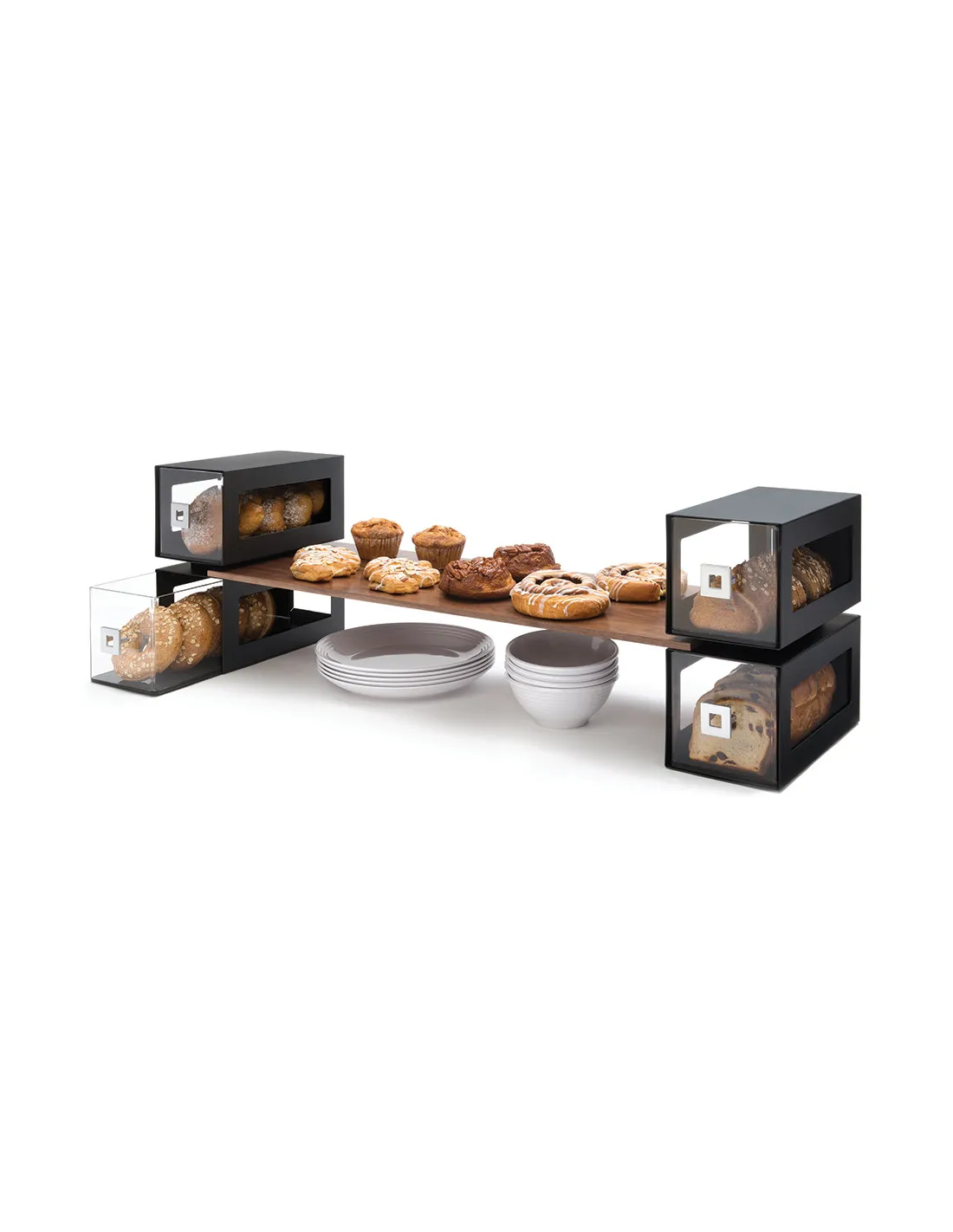 La Columna Expositora de Pastelería con Cajones de Rosseto combina elegancia y funcionalidad para destacar tus pasteles y panes en cualquier establecimiento hostelero.