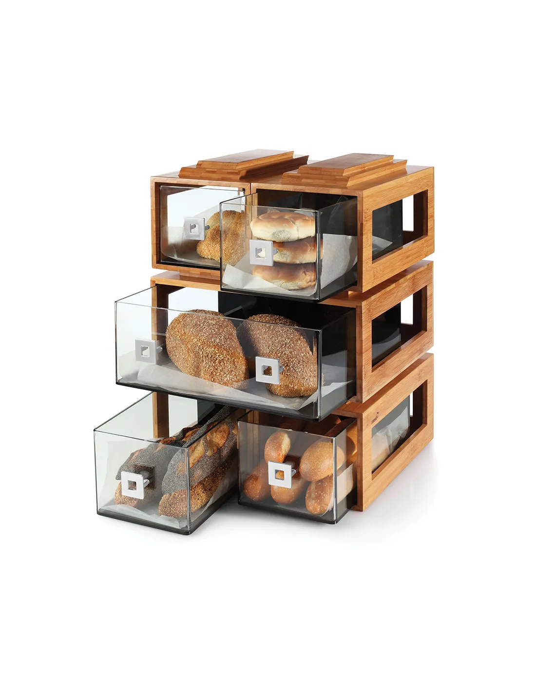 El Sistema Modular de Bambú de Rosseto para Exposición de Pastelería te permite construir tu propio sistema de exhibición según tus necesidades específicas, con un diseño modular y apilable.